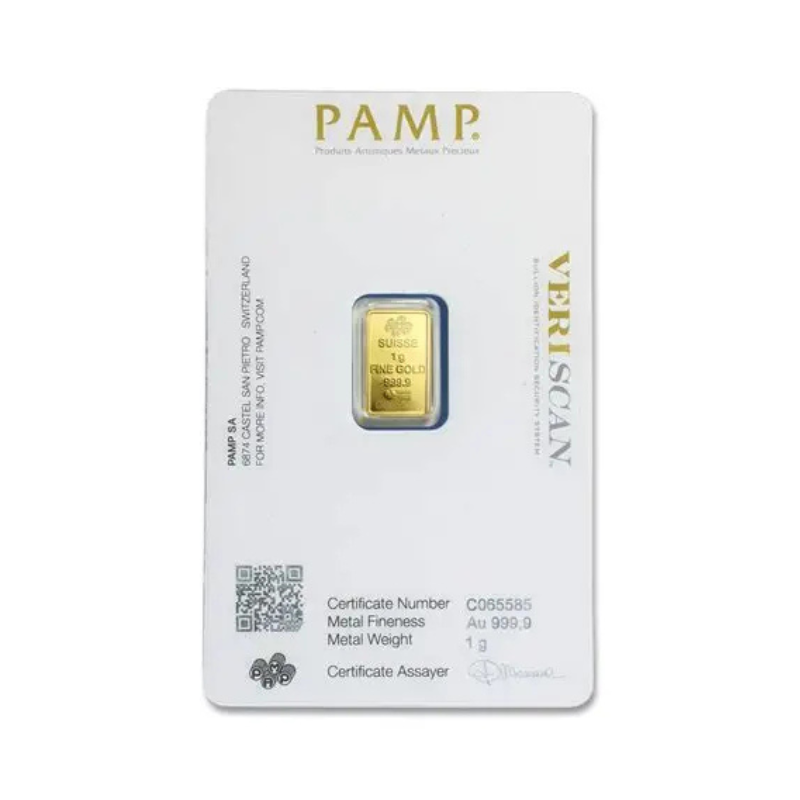 PAMP 1 grammine 999,9 kuldplaat. Toodetud Šveitsis.